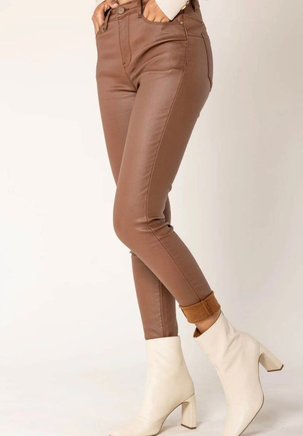 Pantalon simili doublé peau de pêche pour un confort optimal et ne pas avoir froid.