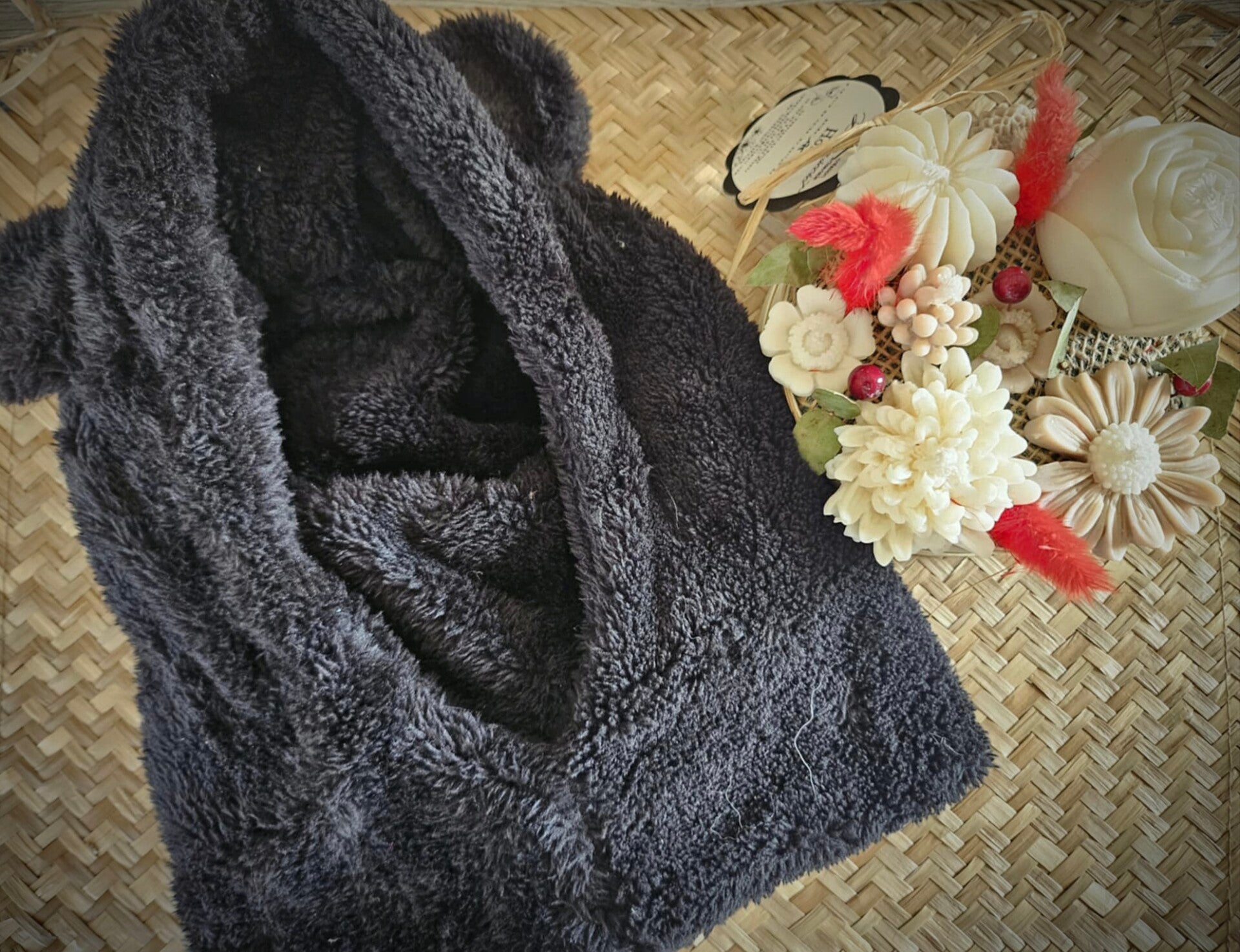 Cagoule forme ourson moumoute avec cache bouche sur le devant on peut le lever ou le retirer. Hyper doux facile idéal pour l'école.