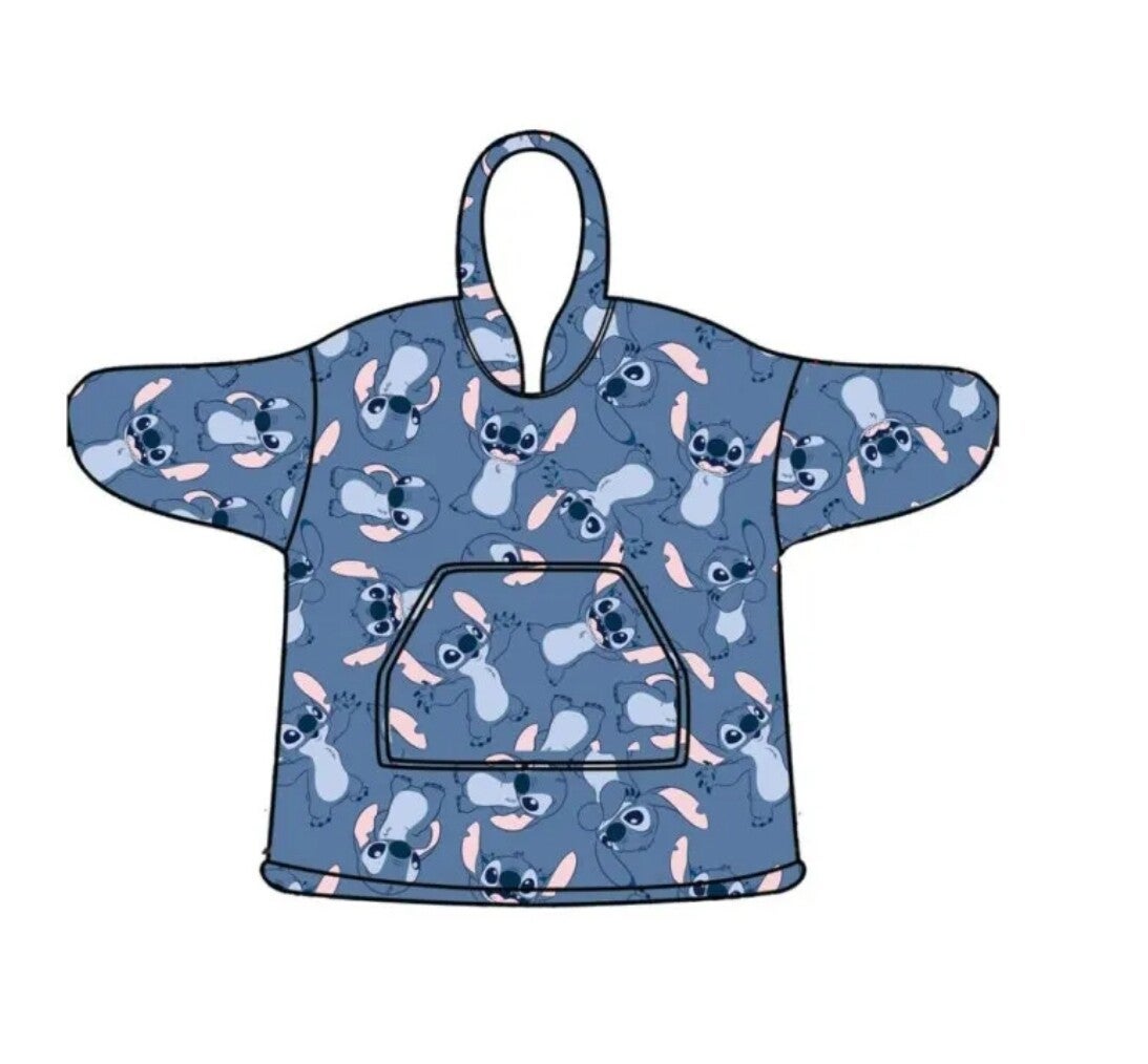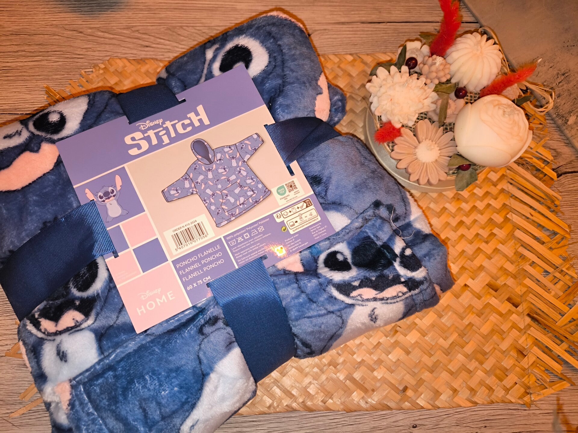 Poncho Stitch bleu en molletonné bien chaud pour l'hiver.