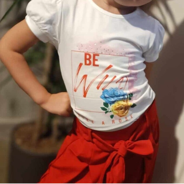 T-shirt brillant à fleurs avec au niveau des épaules des petits plis pour un côté plus habillé.
