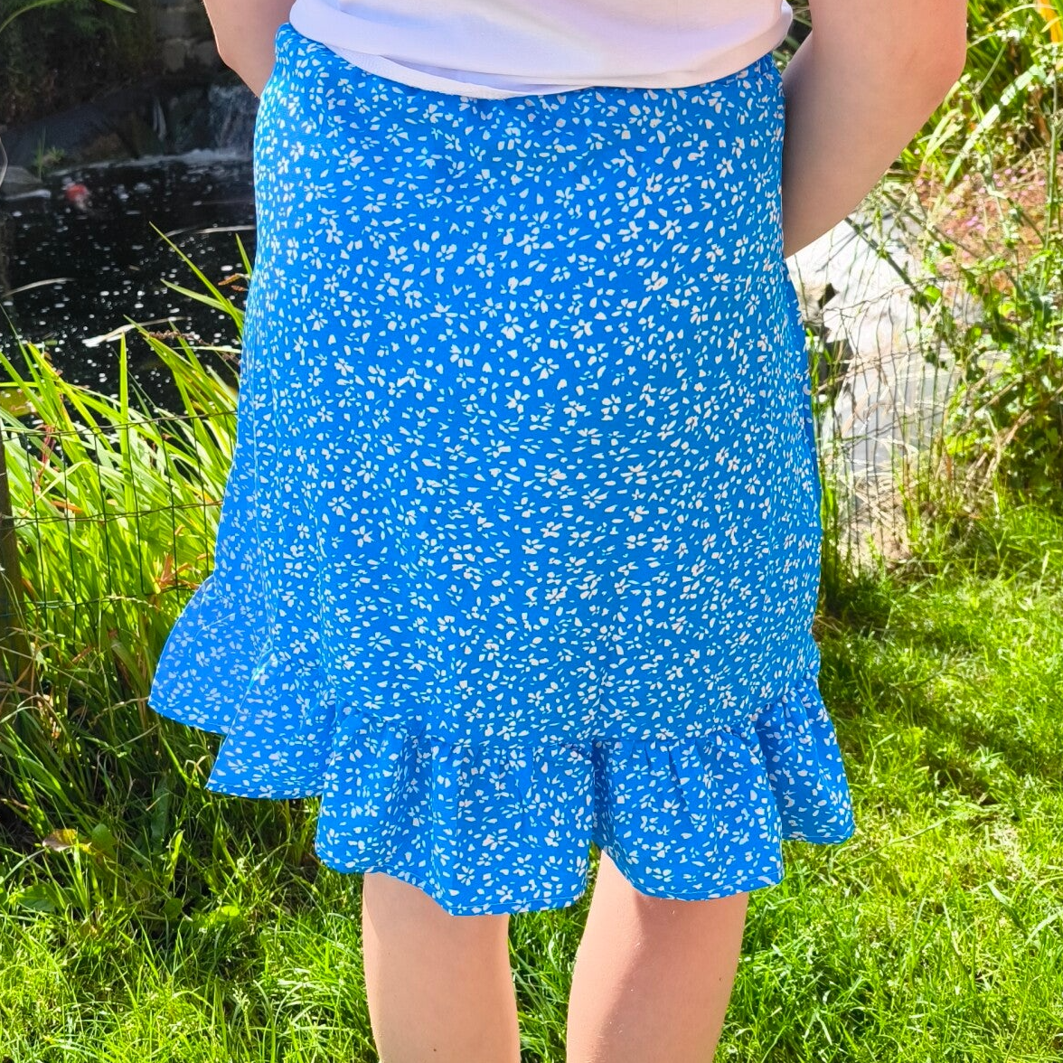 Jupe portefeuille mais qui ne s'ouvre pas totalement afin que ça soit plus pratique.