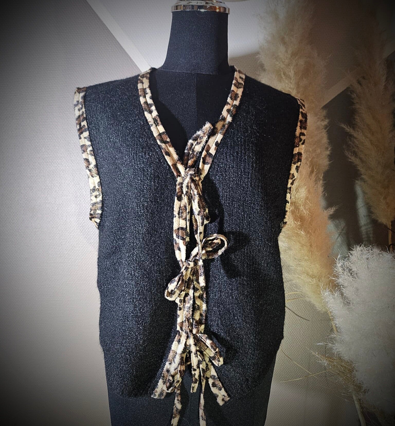 Beau petit gilet sympa avec des noeuds sur le devant léopard matiere toute douce. ( Convient jusqu' a 42)