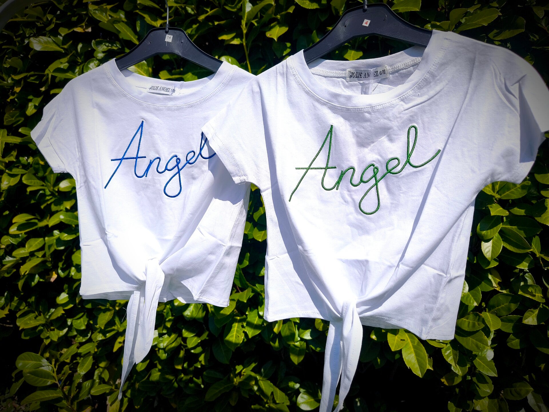 T-shirt Angel bleu qui peut se porter en plus court et t-shirt traditionnel.