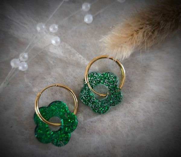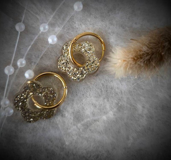 Boucles d' oreilles  brillante avec l' anneaux de couleurs jaune en acier inoxydable .