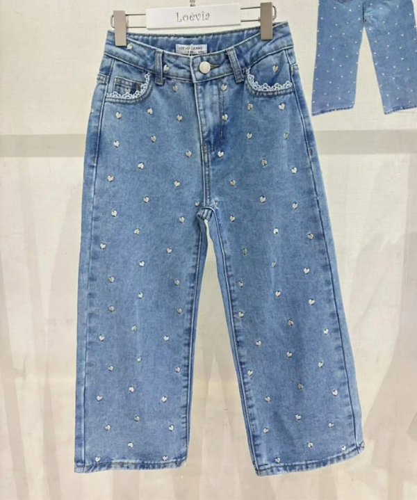 jean brodé coeur reglable a la taille