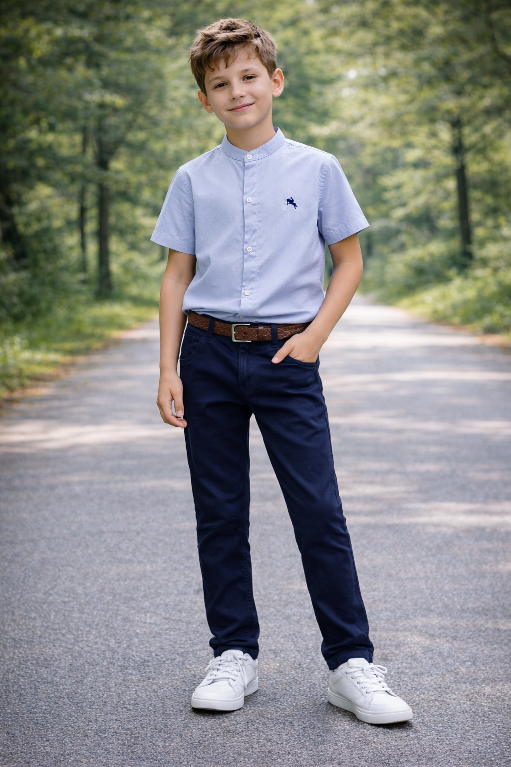 Chemisie bleu ciel colle officier légèrement Pictet.